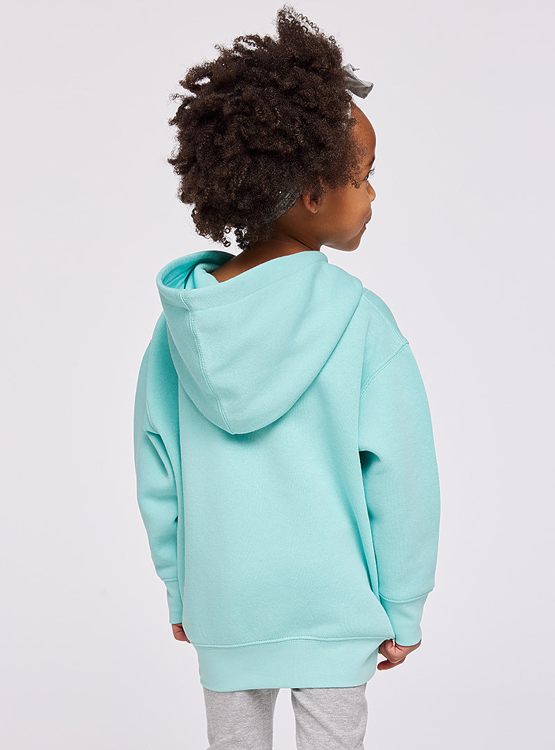 Features: Jersey-lined double needle hem hood • Topstitched hood and neck • Coverstitched shoulders and armholes • Coverstitched ribbed cuffs and bottom band • Side seam pockets • Side seam construction • EasyTear™ label